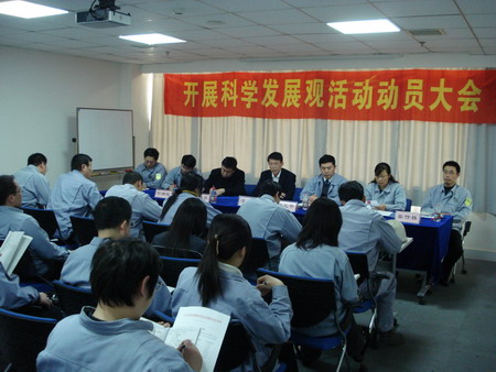 動員大會由總經理孫龍平同志主持。會上,首先宣讀了《關于成立公司學習實踐科學發(fā)展觀領導小組的通知》,荏原博泵黨總支副書記姜作棟同志宣讀了公司《深入學習實踐科學發(fā)展觀活動的實施方案》,明確了各階段的任務要求和具體責任人,并公布了公司信箱、意見箱,鼓勵廣大黨員、群眾對公司開展好學習實踐科學發(fā)展觀活動獻計獻策。