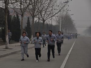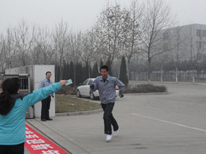 下午4點,隨著副總經(jīng)理王興春手中的發(fā)令槍響,員工們爭先恐后的向前沖去。沿著開發(fā)區(qū)北路望去,身著工作服的員工如一條長龍,蜿蜒向前。迎著凜冽的寒風,大家你追我趕,熱情高漲。女員工們也毫不示弱,巾幗不讓須眉。最終,3000米的路程,質量部的張洪云以19′10″,奪得女子組第一名,第二名是生產部的胡俊,第三名是公司食堂的萬寶瑋;男子組第一名是營業(yè)部的楊大帥,成績是13′50″,他也是我公司蟬聯(lián)三屆的長跑冠軍,第二名是生產部的翟海波,第三名是副總經(jīng)理姜作棟。
